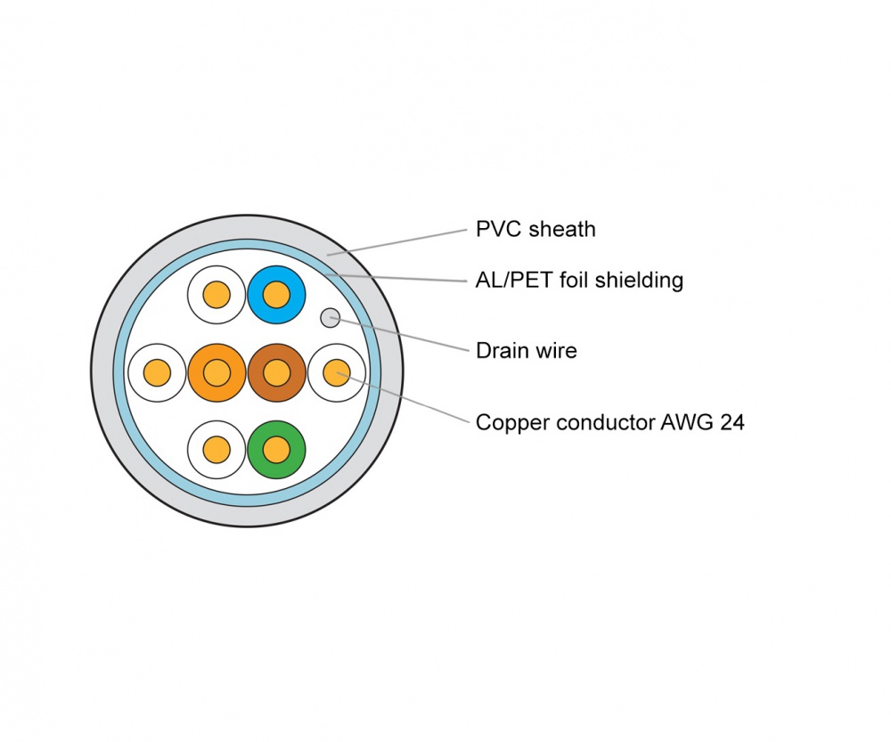 • cable shielded with AL/PET foil, PVC sheath